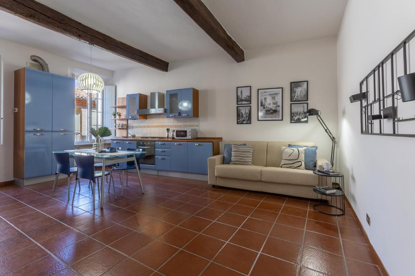 Questo appartamento con aria condizionata comprende 1 camera da letto, un soggiorno, una cucina con utensili più frigorifero, e 1 bagno con bidet e asciugacapelli. Presso questo appartamento troverete asciugamani e lenzuola a disposizione.