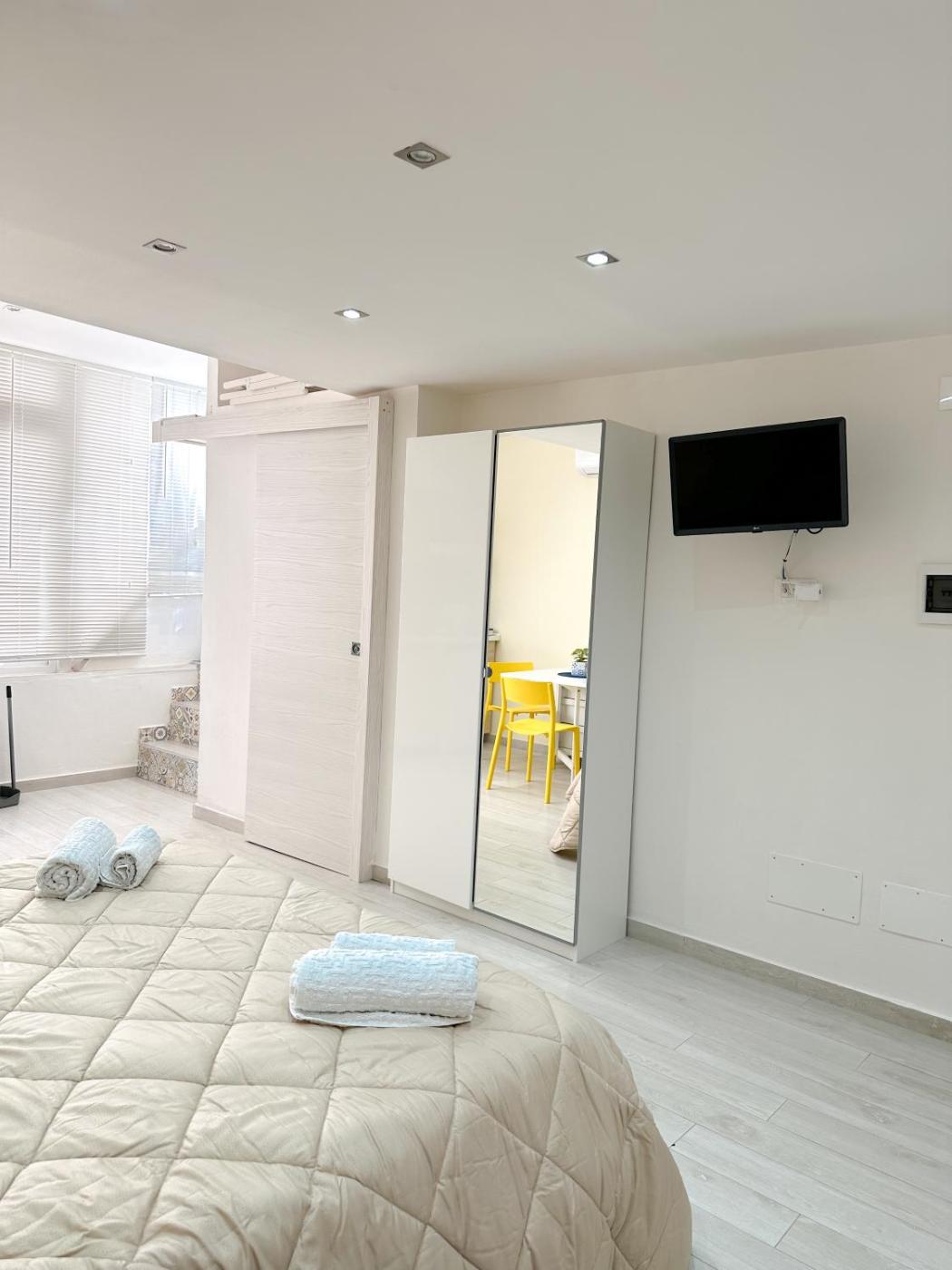 Monolocale con Terrazza. In the well-equipped kitchen, guests will find a stovetop, a refrigerator, kitchenware and a tea and coffee maker. The studio offers air conditioning, a washing machine, a terrace with city views as well as a private bathroom boasting a shower. The unit has 2 beds. ;
