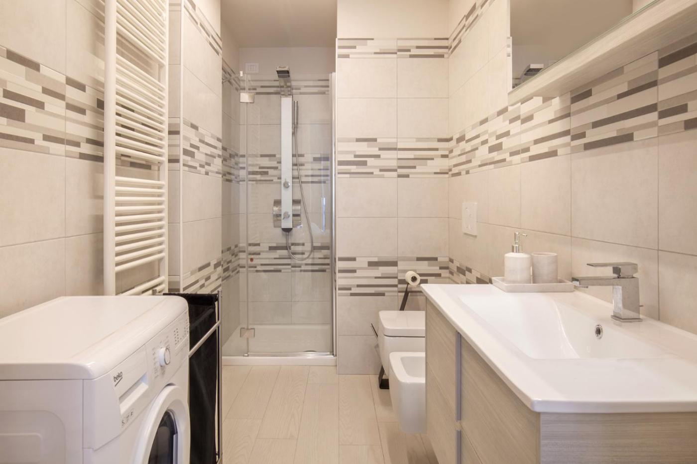 Appartamento con 1 Camera da Letto. This air-conditioned apartment comes with 1 living room, 1 separate bedroom and 2 bathrooms with a shower. Meals can be prepared in the kitchen, which features a stovetop, a refrigerator, a dishwasher and kitchenware. This apartment has a washing machine, a coffee machine, a flat-screen TV and a balcony. The unit has 2 beds.