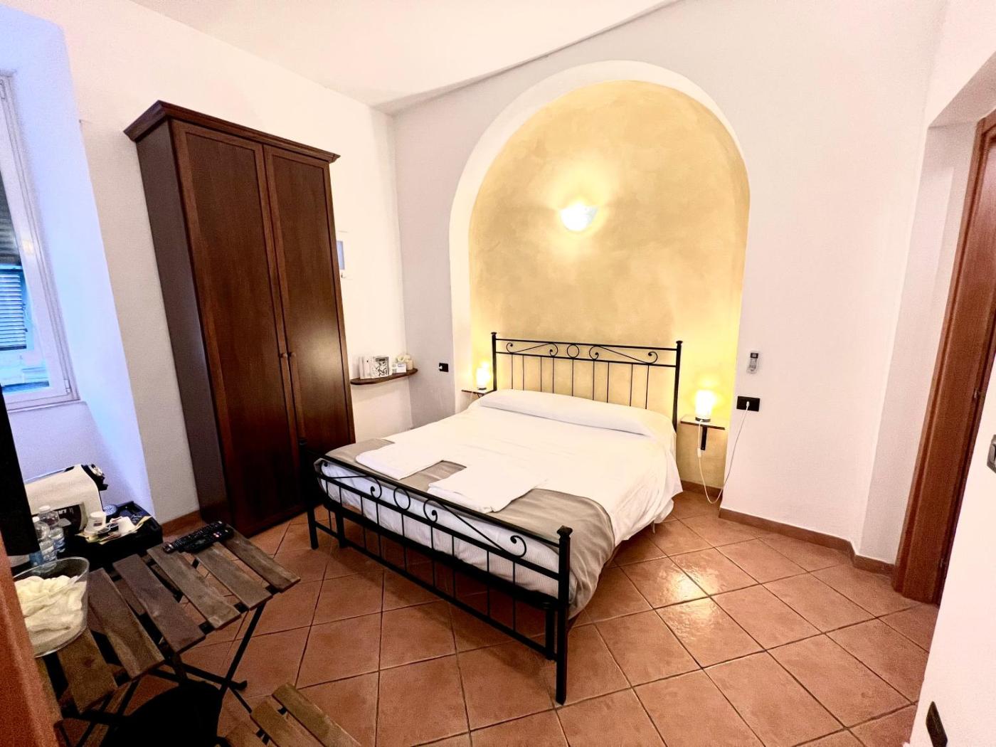 Camera Matrimoniale Standard. Camera matrimoniale dotata di bagno privato con doccia, bidet, asciugacapelli,di cortesia e accappatoi. Questa sistemazione climatizzata vista città presenta una TV via cavo a schermo piatto, un ingresso indipendente, pareti insonorizzate e un minibar. L’alloggio dispone di 1 letto. ;