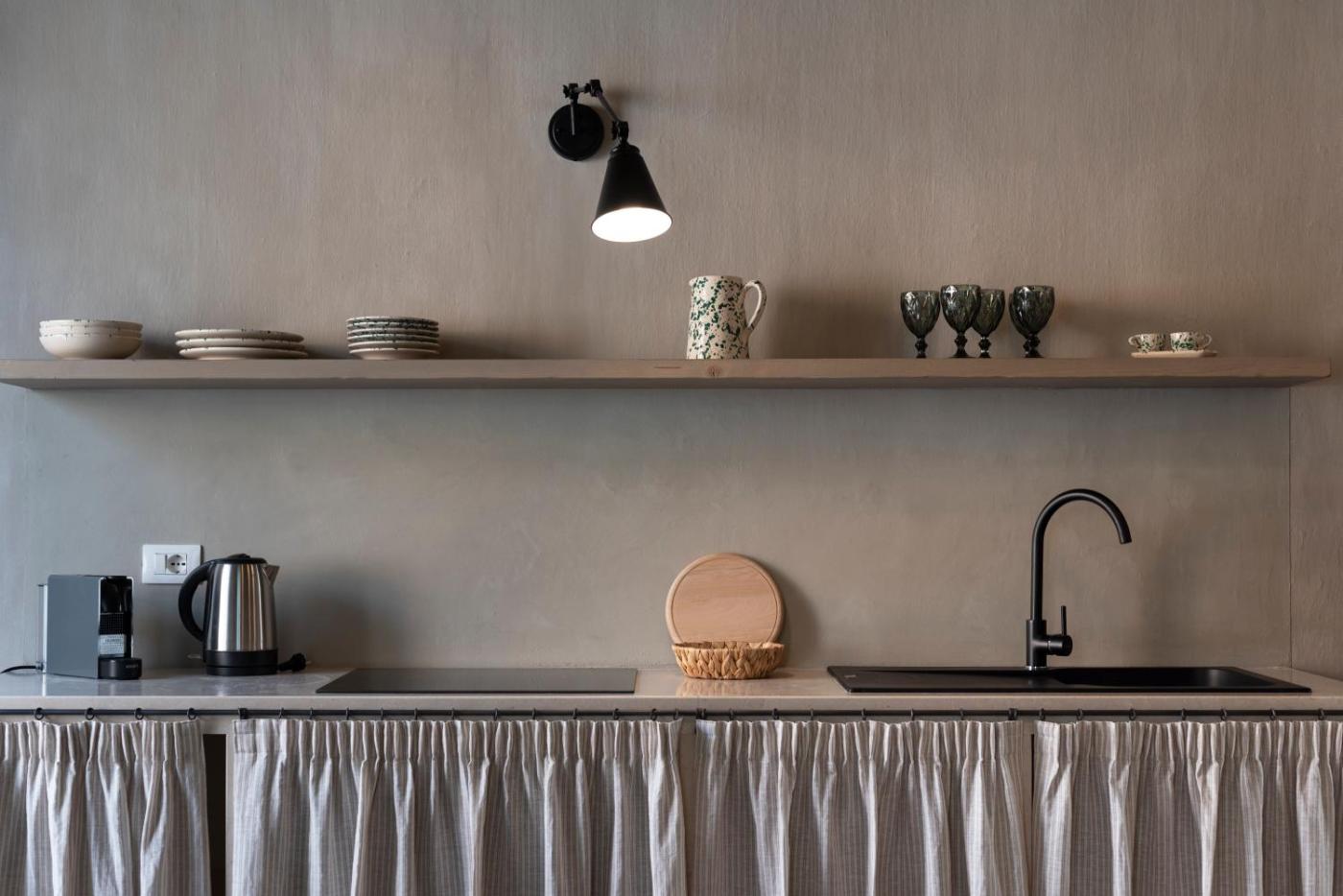Suite Deluxe. Boasting a private entrance, this air-conditioned suite comes with 1 living room, 1 separate bedroom and 1 bathroom with a walk-in shower and a bidet. In the well-equipped kitchen, guests will find a stovetop, a refrigerator, kitchenware and a microwave. There is a washing machine, a coffee machine and a terrace and complimentary winechampagne is available for guests. The unit has 2 beds. ;