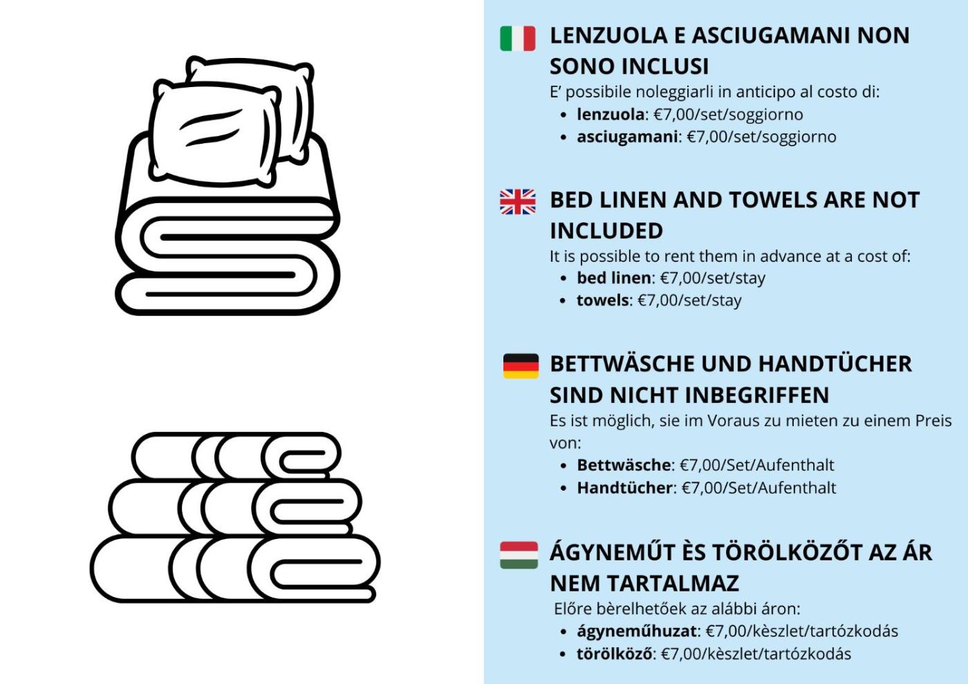 Towels: € 6.00 per person per stay