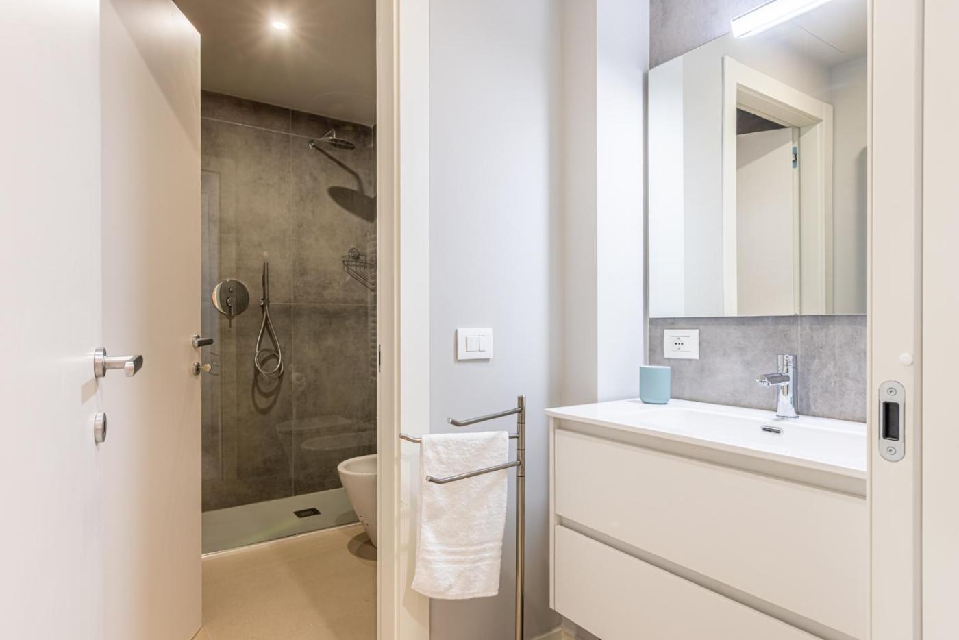 Appartamento con 1 Camera da Letto. This air-conditioned apartment comes with 1 living room, 1 separate bedroom and 1 bathroom with a shower. Meals can be prepared in the well-fitted kitchen, which features a stovetop, a refrigerator, a dishwasher and a microwave. The apartment features a washing machine, a coffee machine, a seating area, a dining area, as well as a flat-screen TV. The unit has 2 beds.
