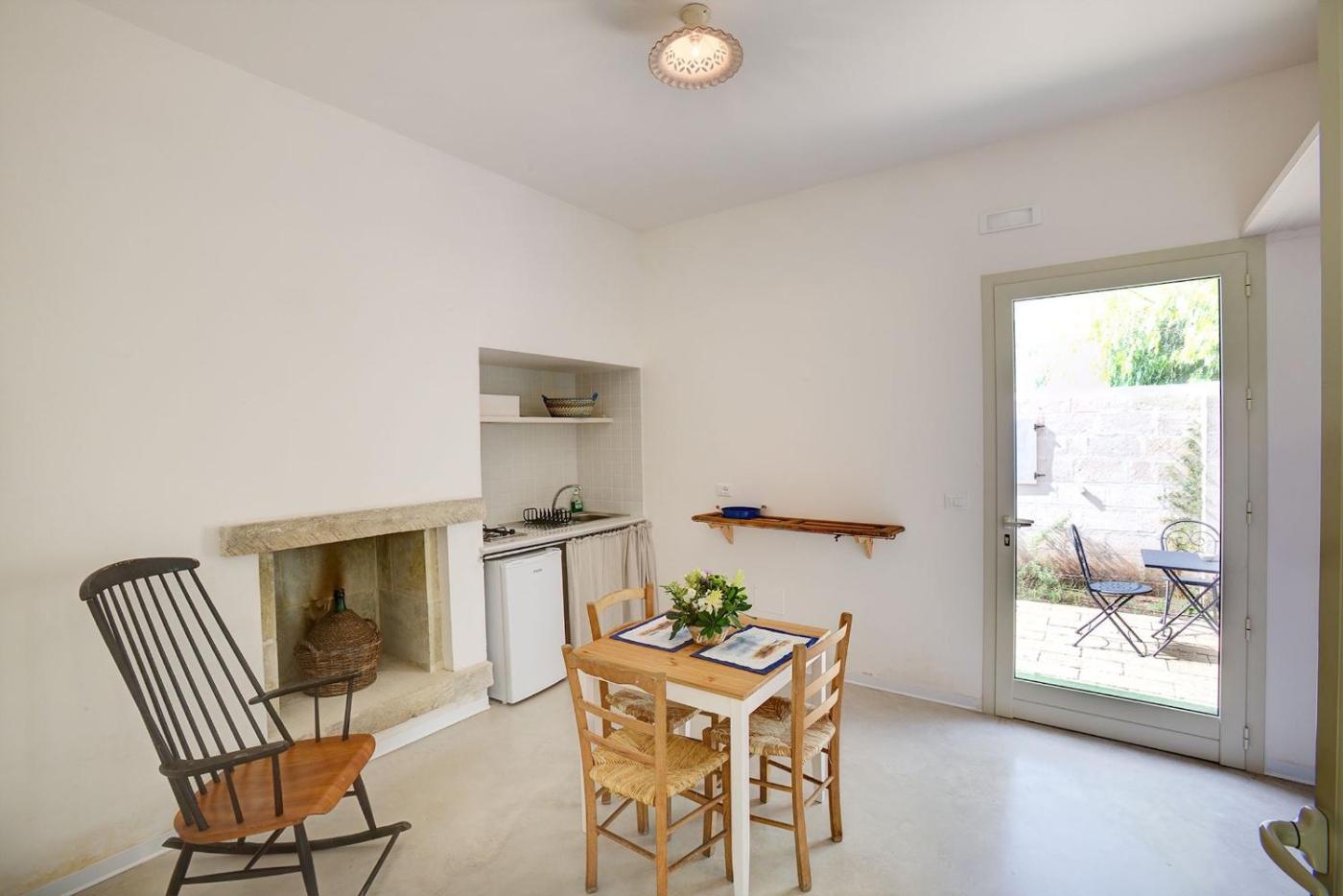 Monolocale Superior. Monolocale situato al piano terra e dotato di aria condizionata, giardino privato, angolo cottura e tavolo da pranzo. Presenta inoltre un camino realizzato in pietra leccese tipica.