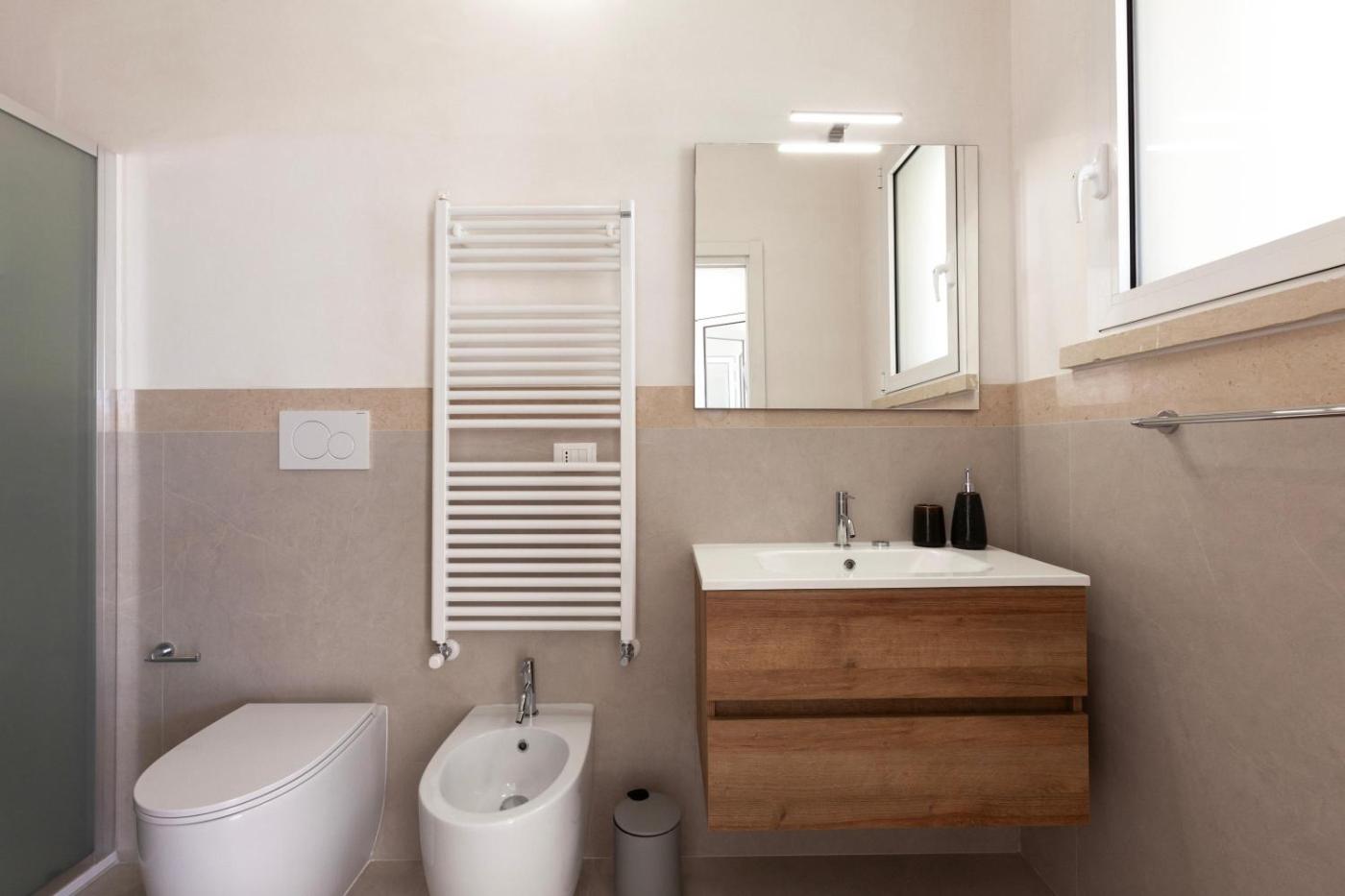 Casa Vacanze. The air-conditioned holiday home has 2 bedrooms and 2 bathrooms with a shower and a bidet. The well-fitted kitchen features a stovetop, a refrigerator, kitchenware and an oven. Boasting an outdoor dining area, this holiday home also features a washing machine, a coffee machine and a TV. The unit has 3 beds. ;