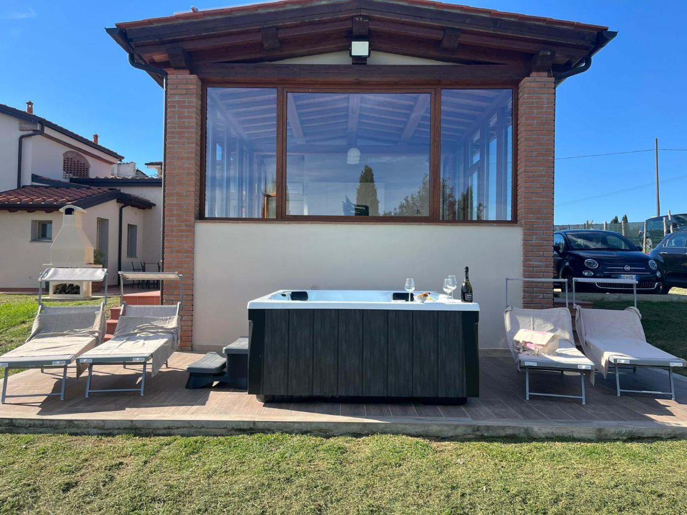 Villa con 2 Camere da Letto. This villa features a hot tub. Boasting a private entrance, this air-conditioned villa features 3 living rooms, 2 separate bedrooms and 2 bathrooms with a shower and a bidet. Guests will find a refrigerator, a dishwasher, kitchenware and an oven in the well-equipped kitchen. The villa also comes with a barbecue. Featuring an outdoor dining area, this villa also features a washing machine, a coffee machine and a TV. The unit has 3 beds.