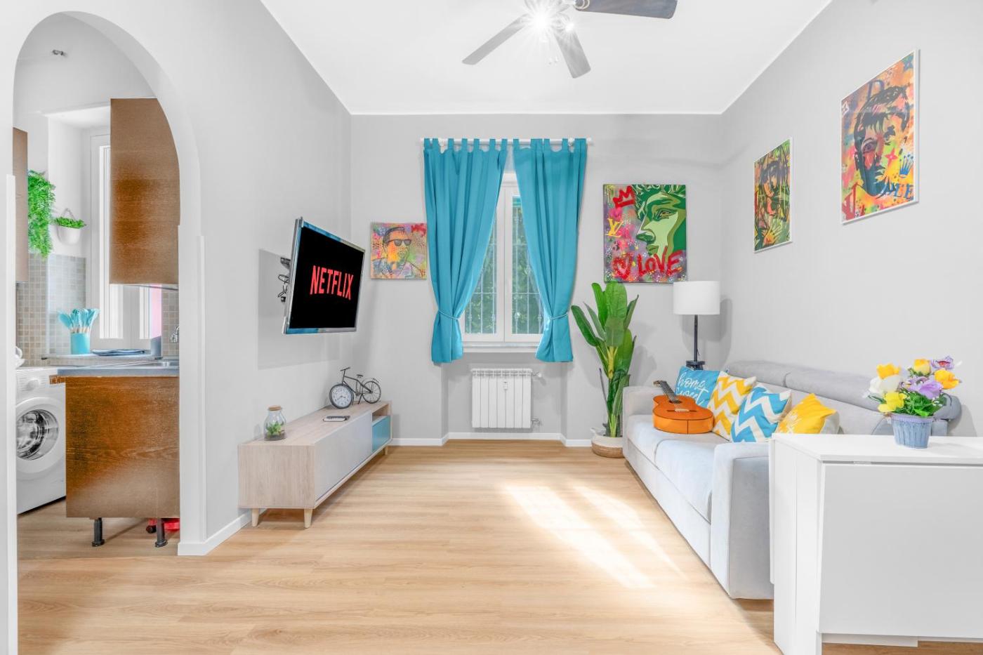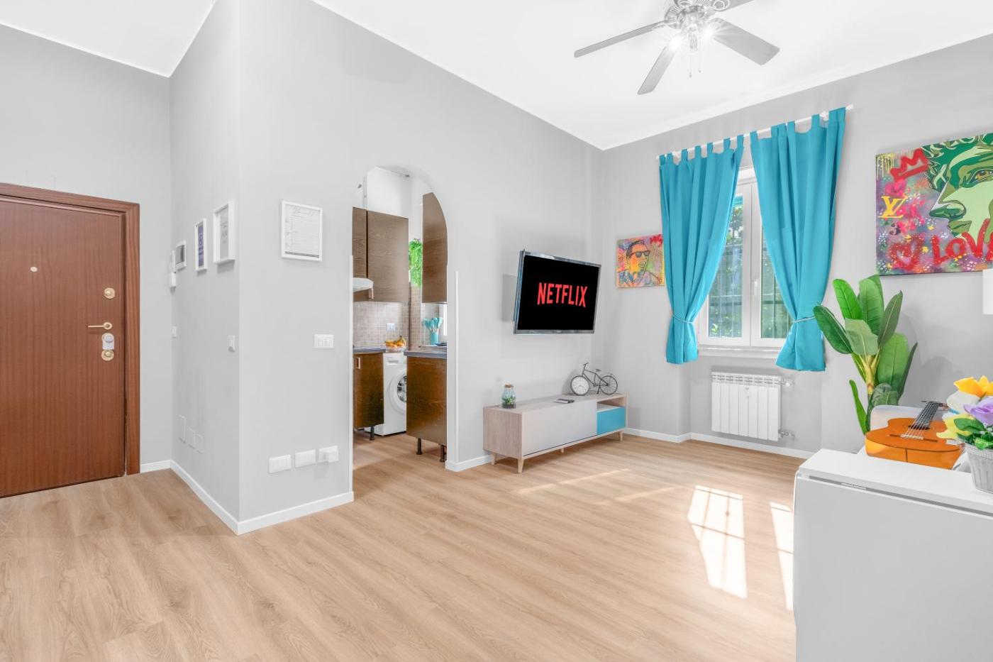 Appartamento Familiare con 1 Camera da Letto. This apartment includes 1 living room, 1 separate bedroom and 1 bathroom with a shower and free toiletries. In the well-fitted kitchen, guests will find a stovetop, a refrigerator, kitchenware and a microwave. The air-conditioned apartment offers a flat-screen TV with streaming services, a washing machine, a tea and coffee maker, a seating area as well as garden views. The unit has 2 beds.
