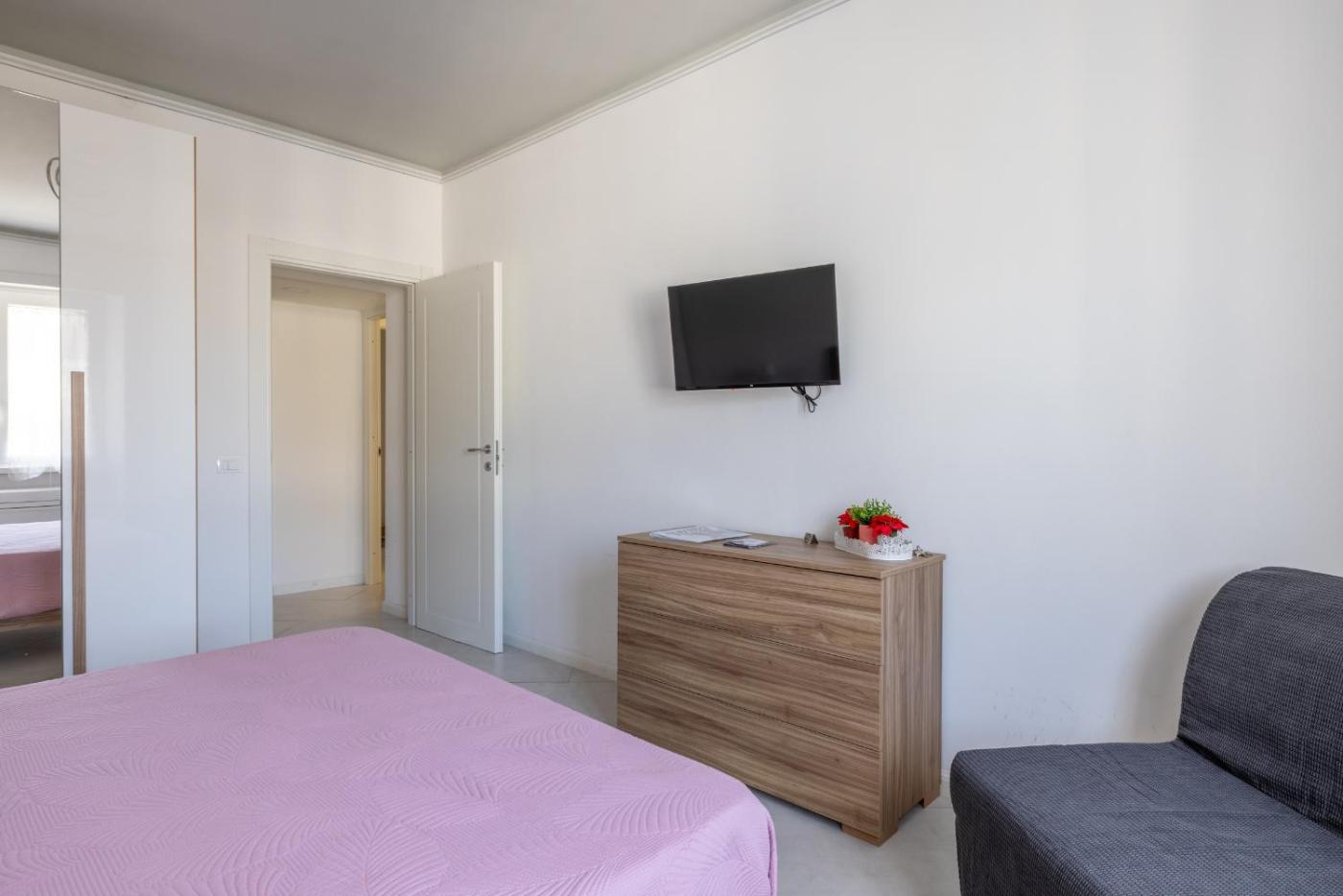 Appartamento con 2 Camere da Letto. The spacious apartment features 2 bedrooms and 2 bathrooms with a walk-in shower and free toiletries. In the kitchen, guests will find a stovetop, a refrigerator, kitchenware and a microwave. The air-conditioned apartment offers a flat-screen TV with streaming services, a washing machine, a tea and coffee maker, a dining area as well as city views. The unit offers 2 beds.