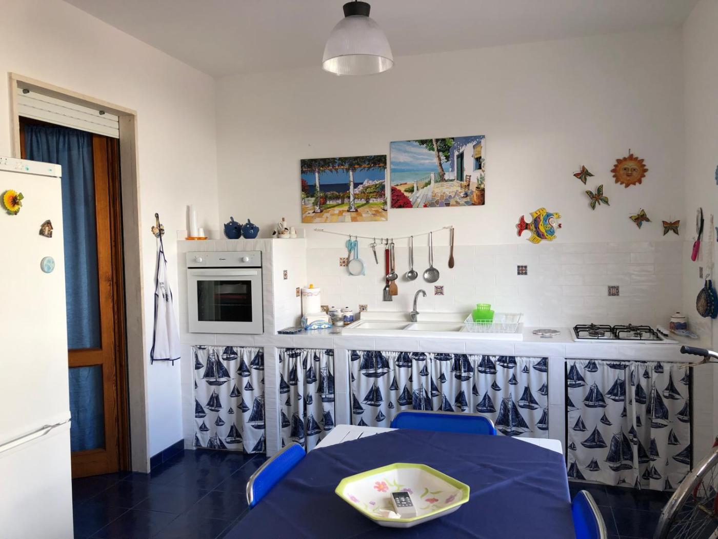 Questa casa vacanze con aria condizionata comprende 2 camere da letto e 2 bagni con bidet, doccia e asciugacapelli. Troverete una zona pranzo e una cucina con frigorifero, forno e piano cottura.