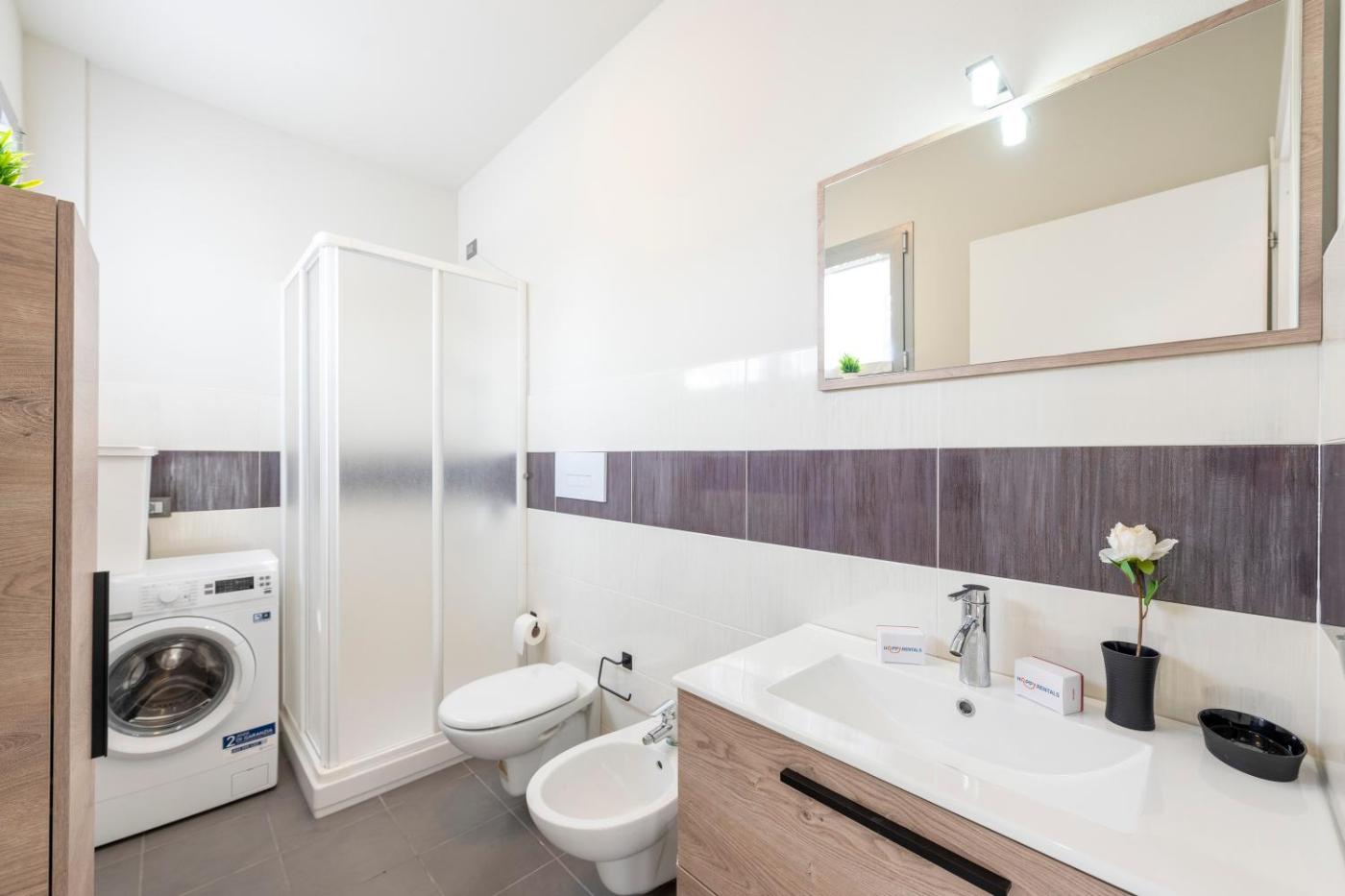 Avrete a disposizione una cucina con frigorifero e macchina da caffè, una TV e un bagno privato con bidet e doccia. Cè una zona salotto e una zona pranzo in tutte le unità .